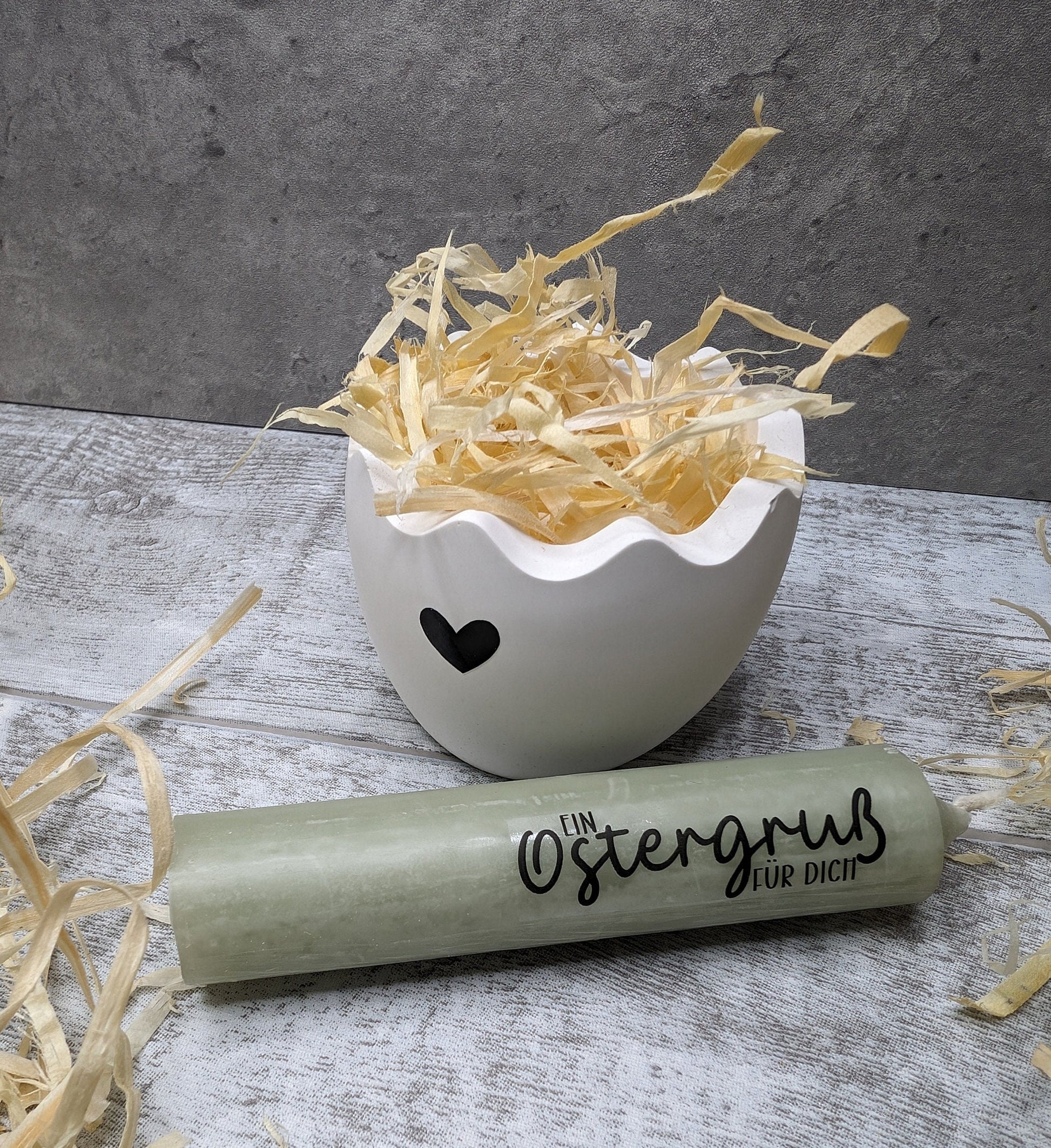 Osterkerze Mit Kerzenständer Ei – Süße Geschenkidee Mit Wunschfarbe & Herz-Applikation