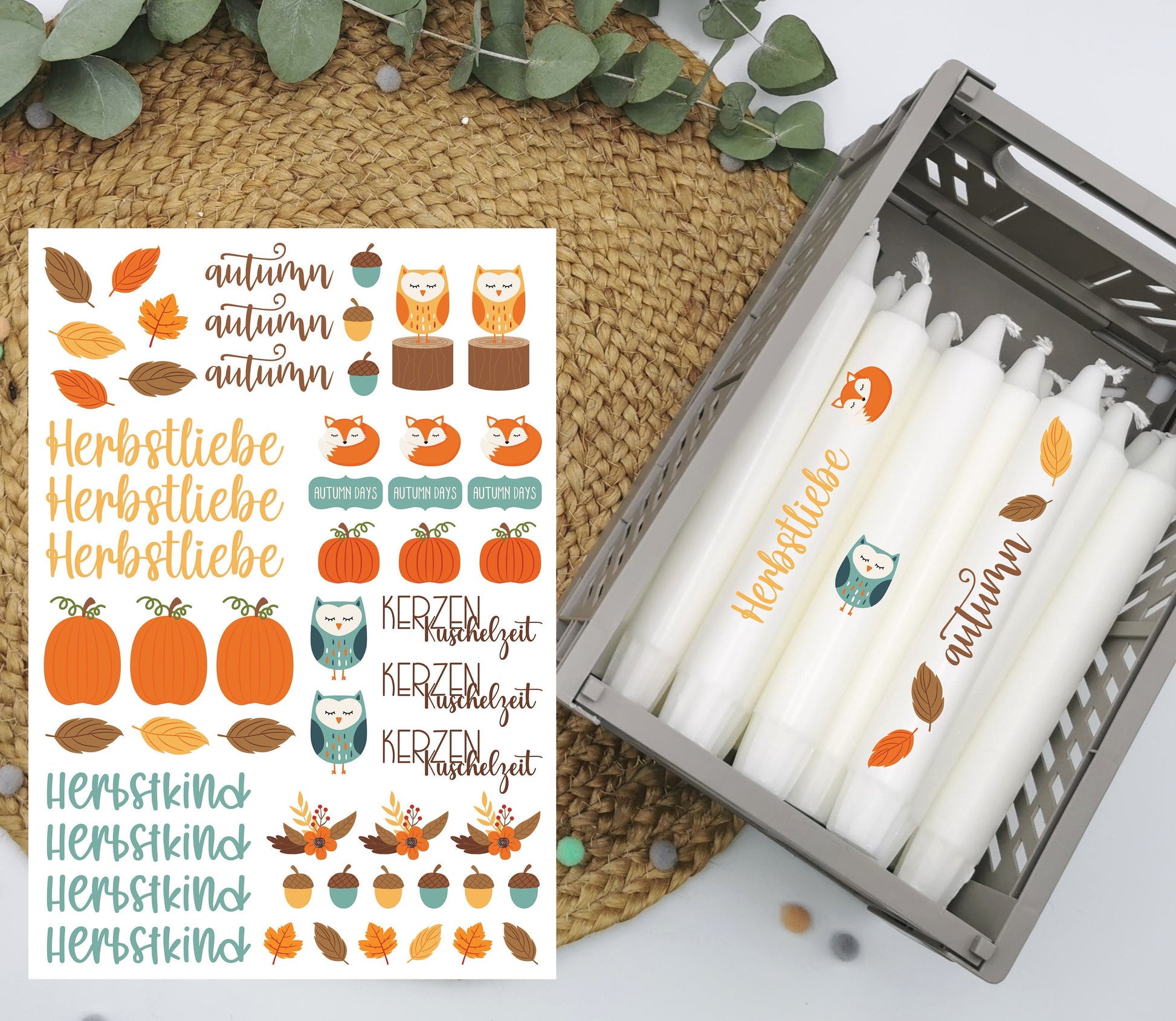 Herbstliebe * Kerzentattoos * Herbstkind * bunt * A4 oder A5 * Wasserschiebefolie