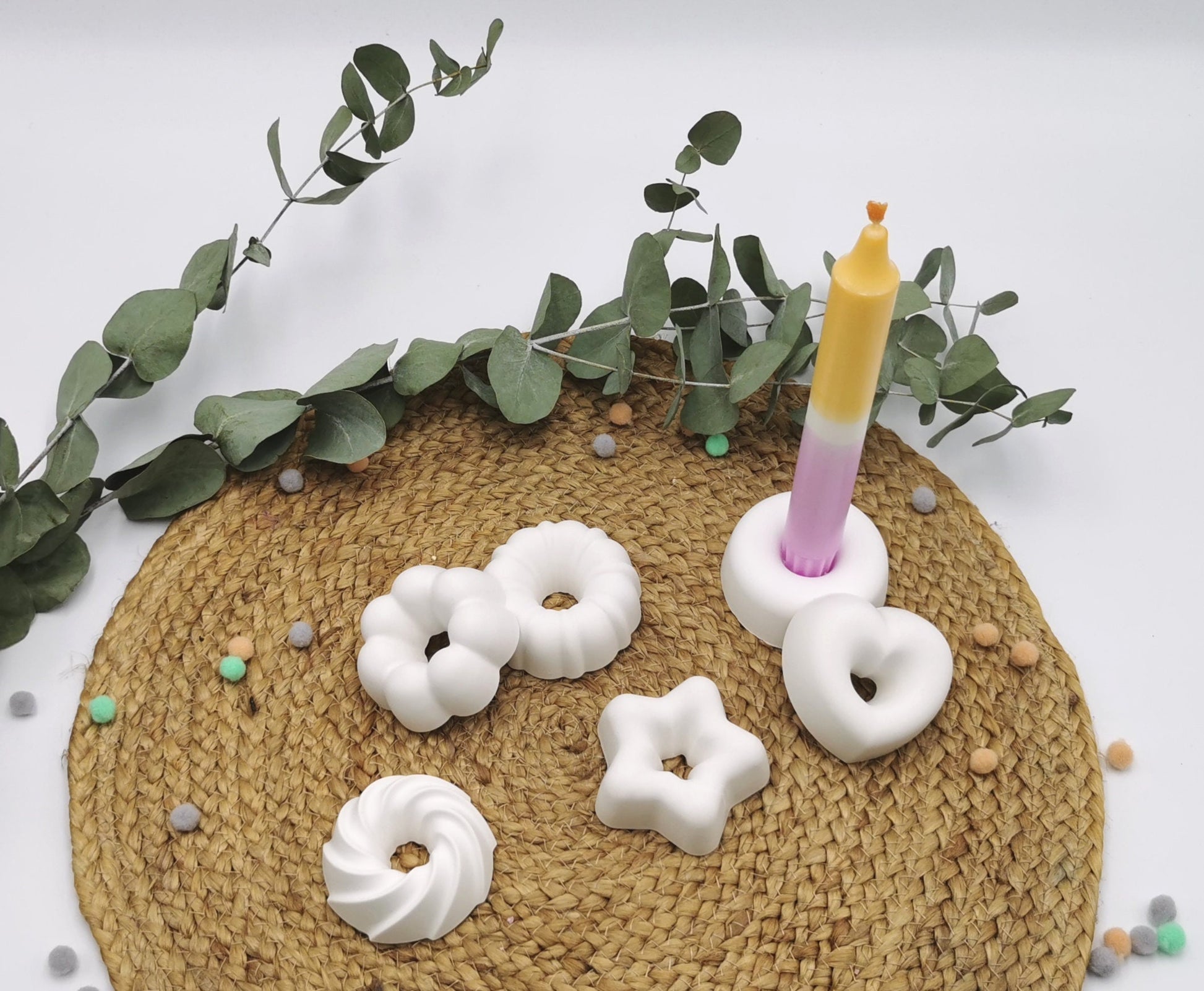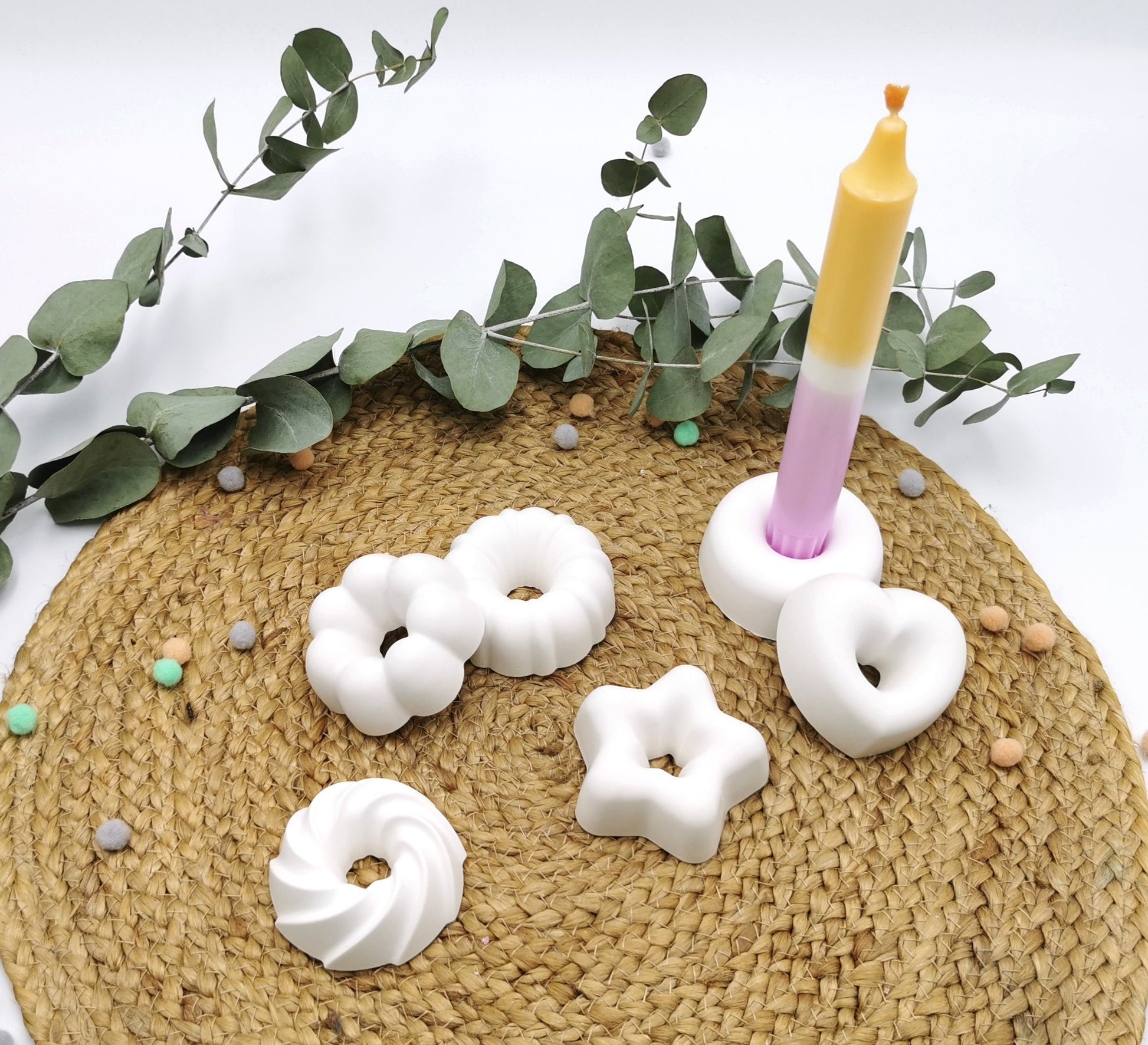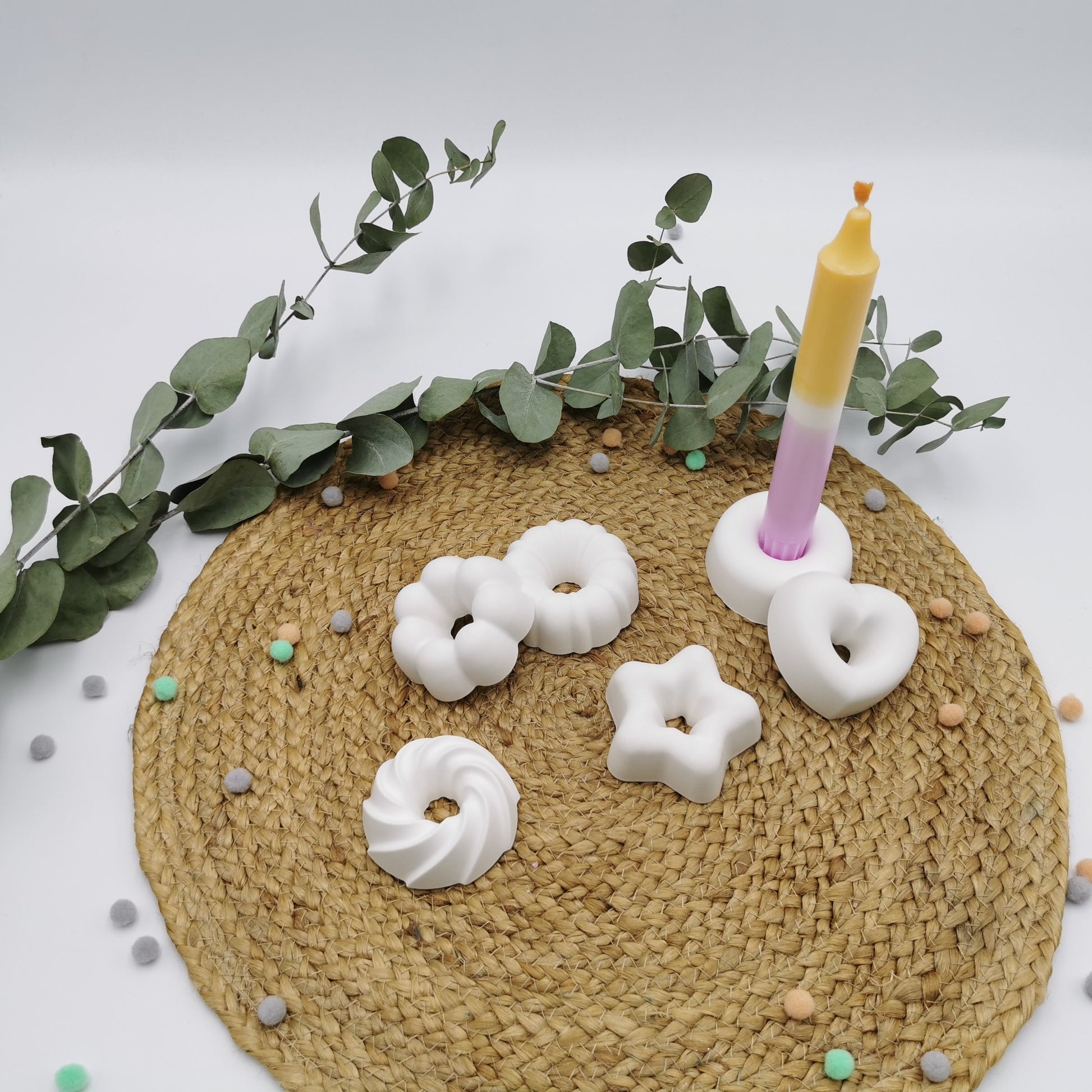 Du willst eine Kerze verschenken und dir fehlt noch das gewisse Etwas?! Unsere kleinen Kerzenständer aus Raysin sind der ideale Hingucker und setzen deine Kerze perfekt in Szene. Die Formen sind der absolute Hingucker und eine tolle Geschenkidee, aber auch ideal, um deinen Geburtstagstisch zu verschönern. Die Kerzenständer eignen sich auch wunderbar im Alltag für deine Tischdeko, gönn dir selbst eine schöne Kleinigkeit!