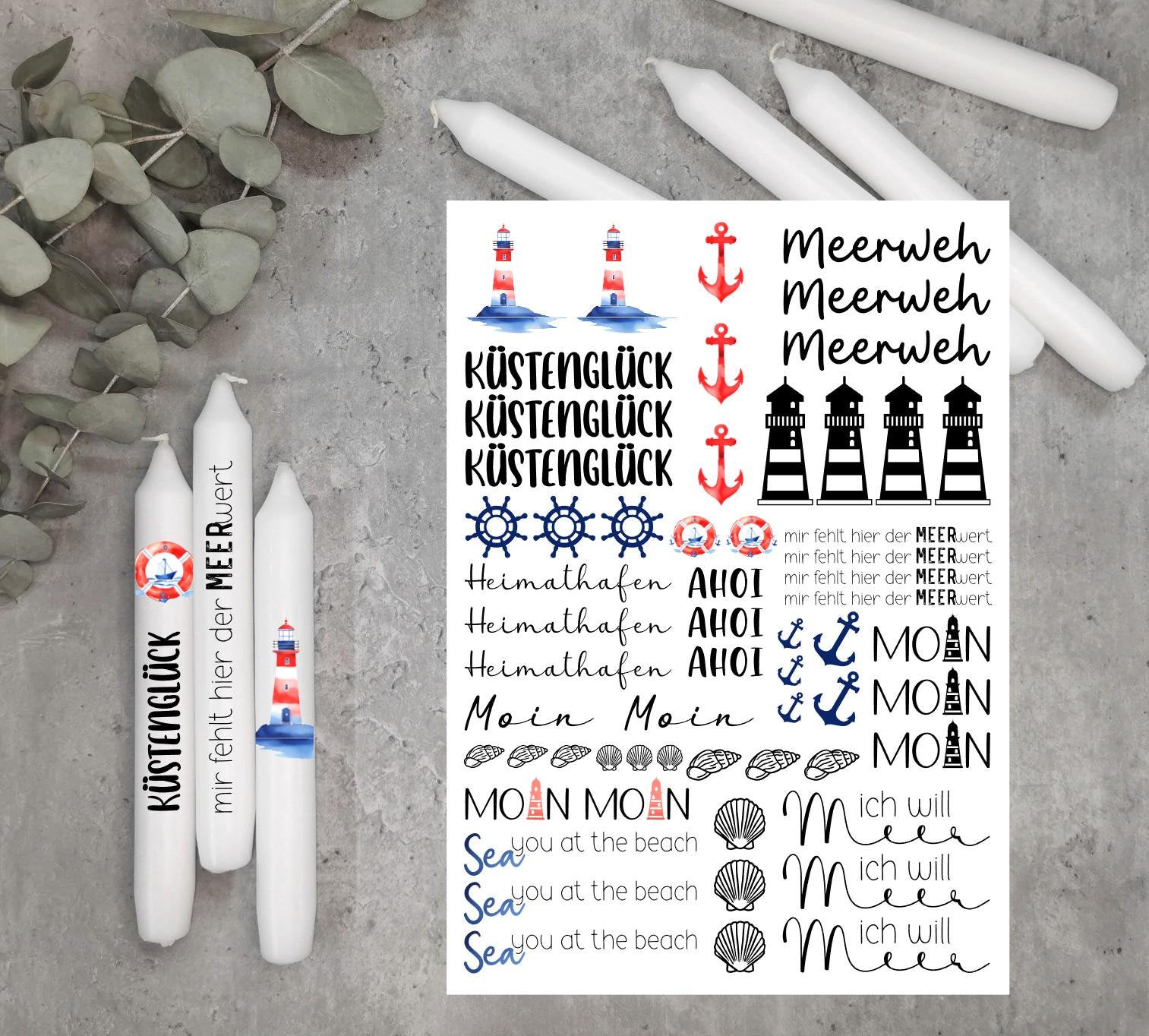 Kerzentattoos * Meerweh * A4 oder A5 * maritim * Wasserschiebefolie
