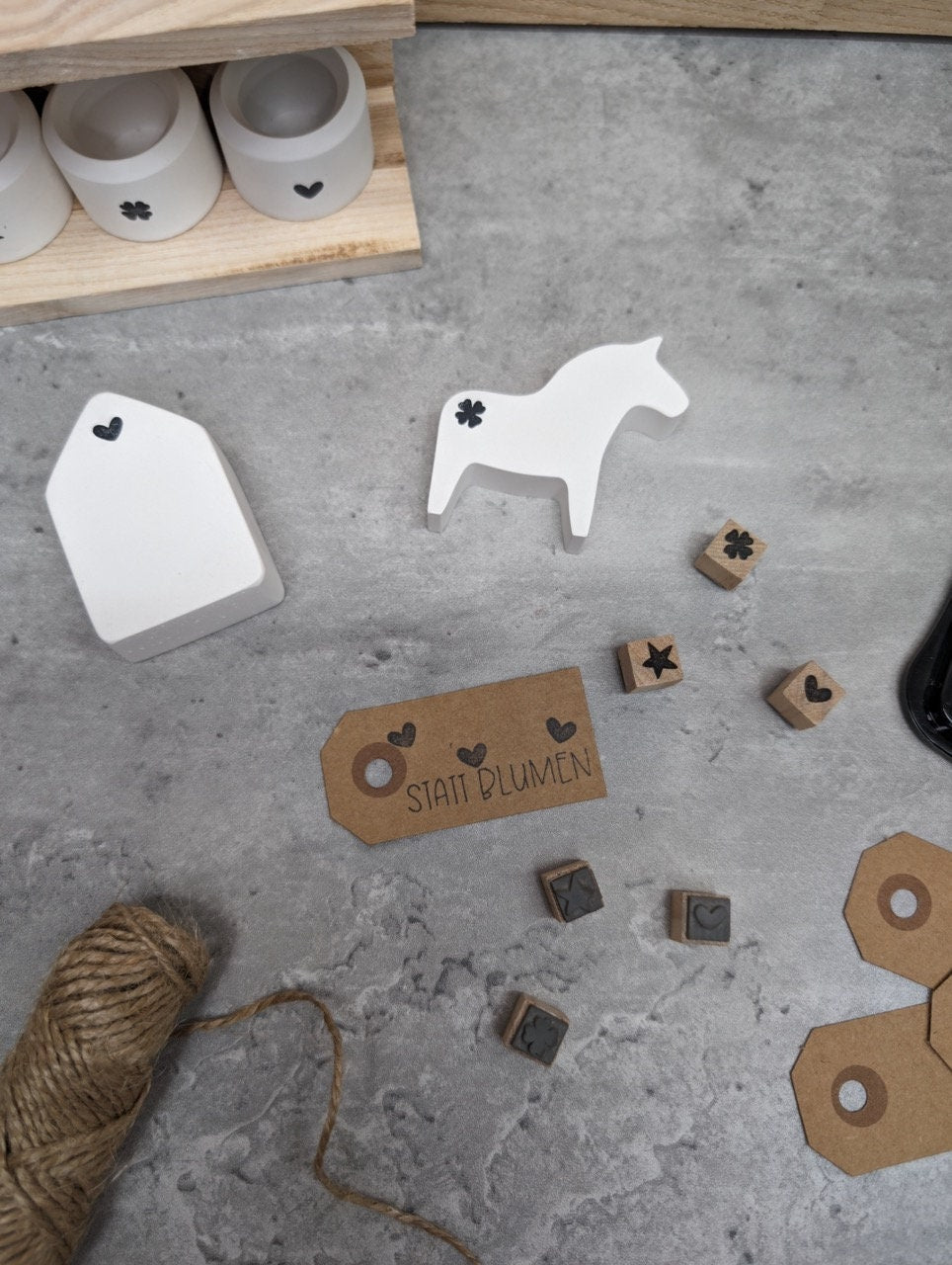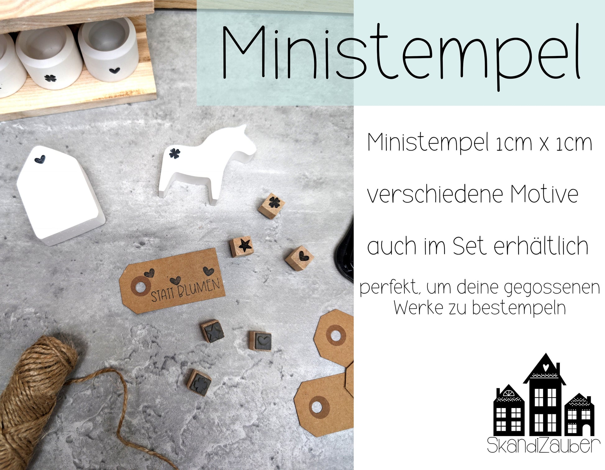 Ministempel - ideal für deine gegossene Deko, Karten und Geschenkanhänger Unsere Ministempel haben eine Größe von 1cm x 1cm und sind ideal, um gegossene Deko zu verzieren, Karten zu basteln oder kleine Geschenkanhänger zu verschönern.