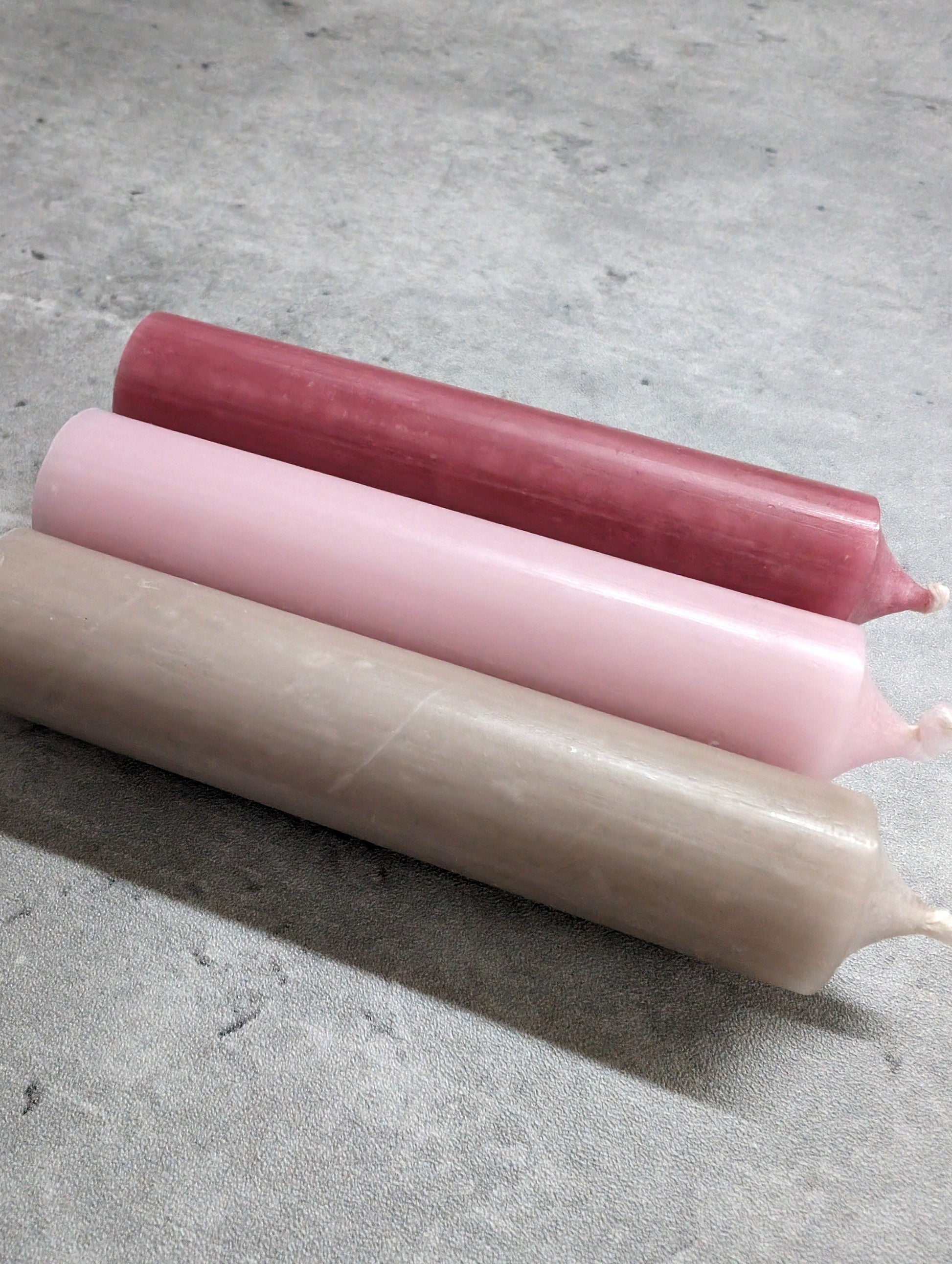 Mit einer Länge von etwa 10 cm und einem Durchmesser von 22 mm passen diese Stabkerzen perfekt in jede Dekoration.